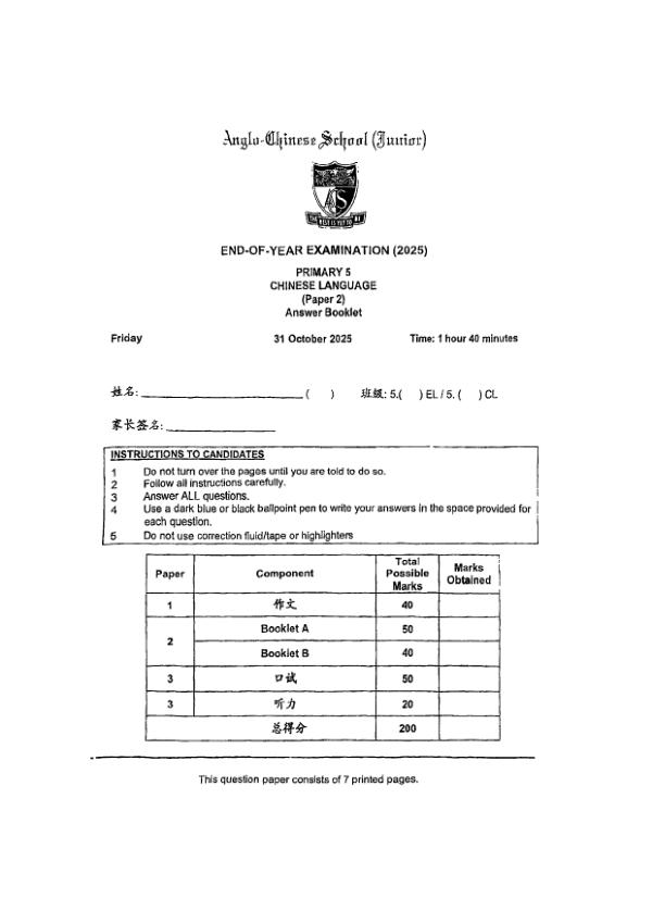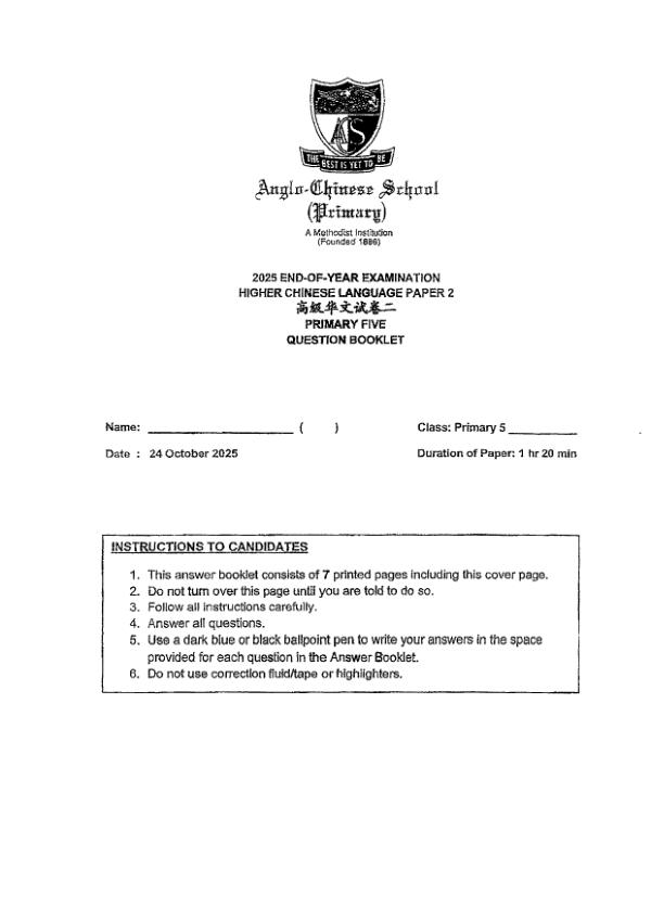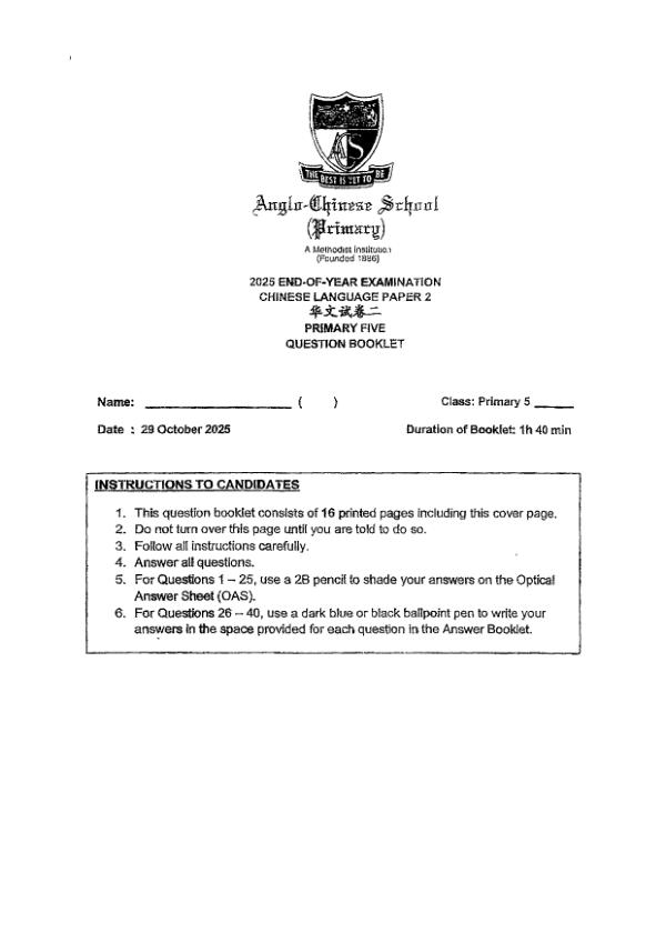 P5 Chi 2025 SA2 — Anglo Chinese Anglo Chinese