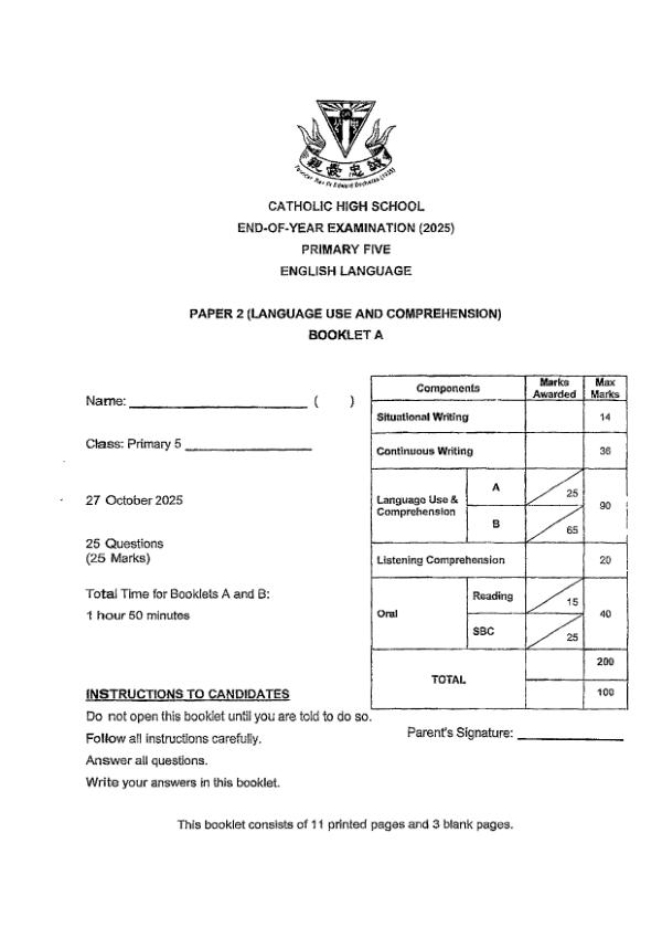 P5 Eng 2025 SA2 — Catholic High Catholic High