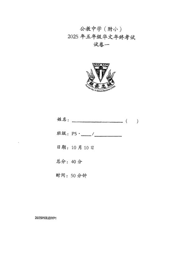 P5 Chi 2025 SA2 — Catholic High Catholic High