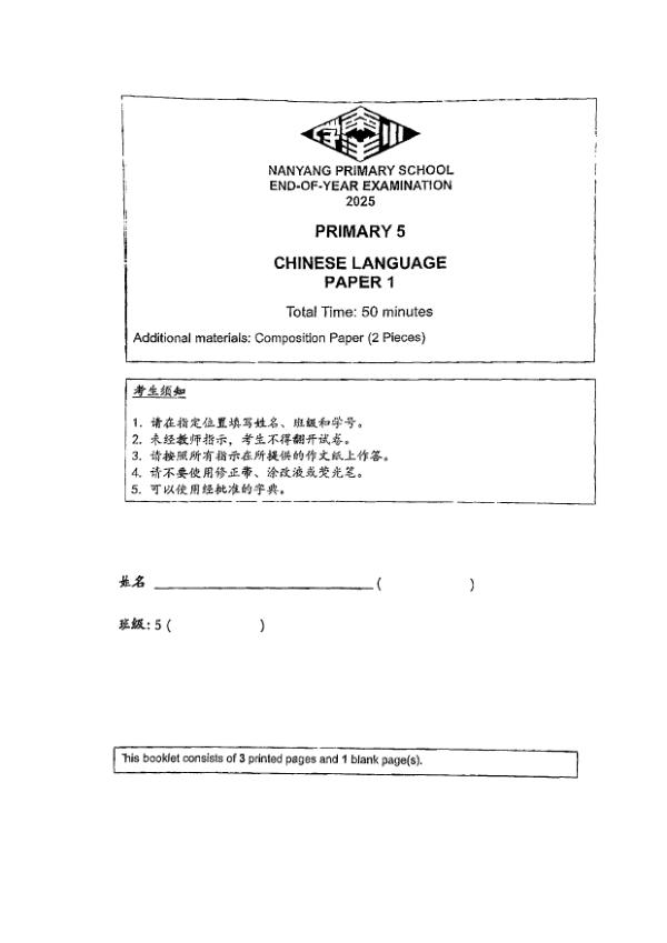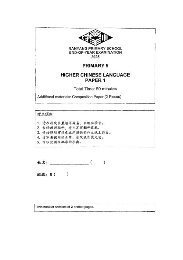 P5 Chi 2025 SA2 — Nanyang Nanyang