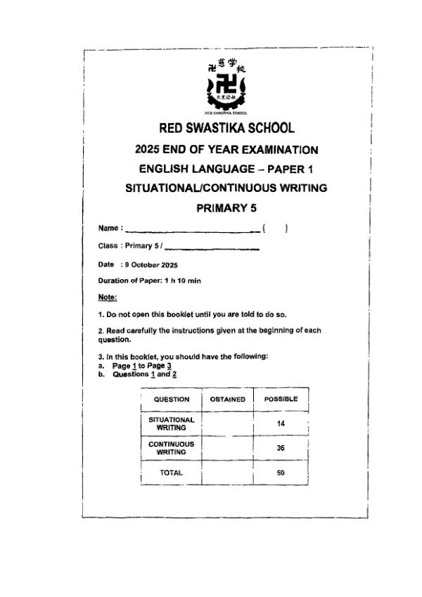 P5 Eng 2025 SA2 — Red Swastika Red Swastika
