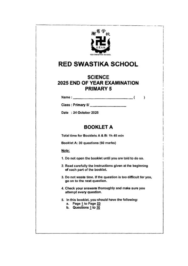 P5 Sci 2025 SA2 — Red Swastika Red Swastika