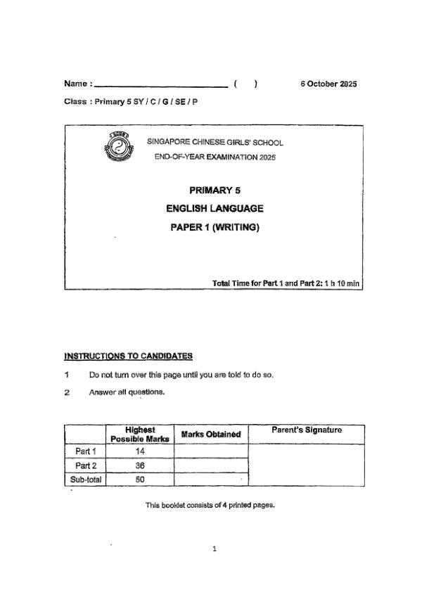 P5 Eng 2025 SA2 — Singapore Chinese Girls Singapore Chinese Girls