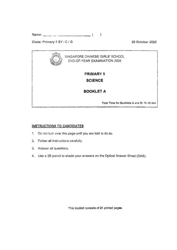 P5 Sci 2025 SA2 — Singapore Chinese Girls Singapore Chinese Girls