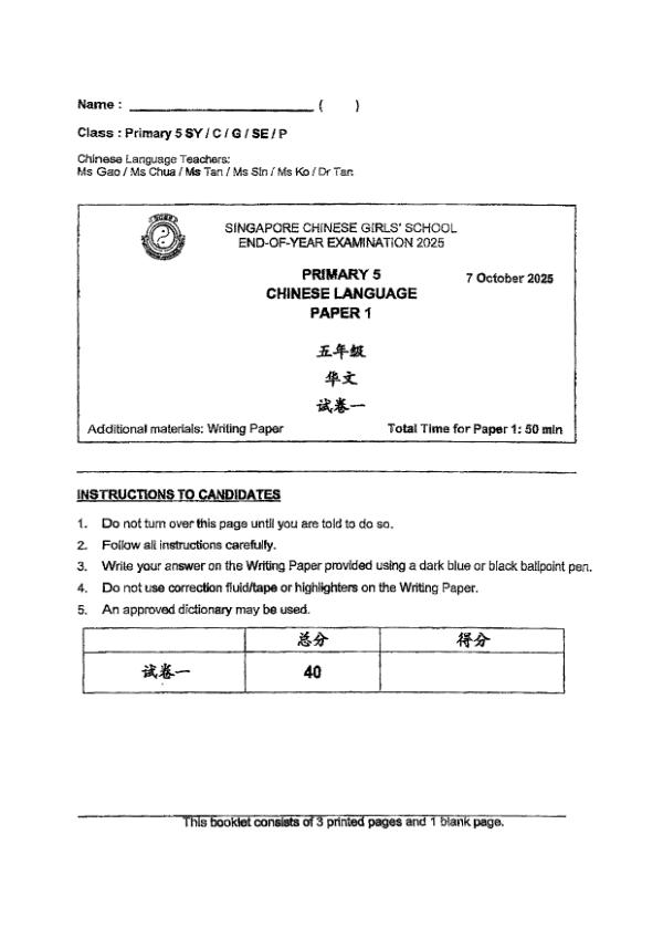 P5 Chi 2025 SA2 — Singapore Chinese Girls Singapore Chinese Girls