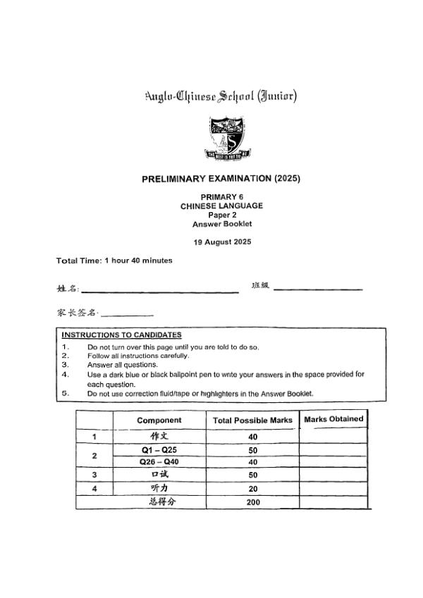 P6 Chi 2025 SA2 — Anglo Chinese Anglo Chinese