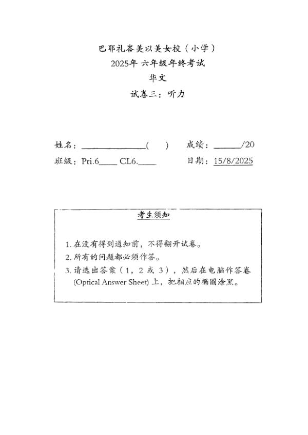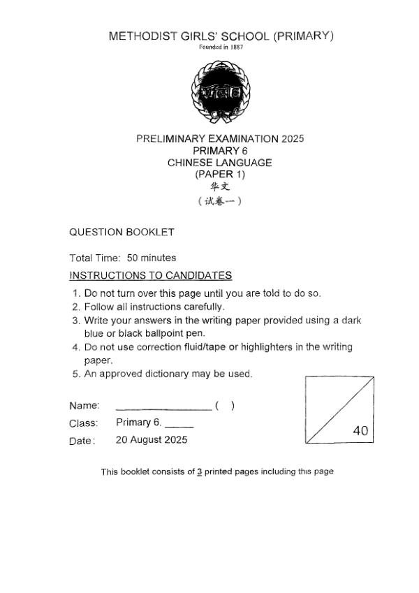 P6 Chi 2025 SA2 — Methodist Girls Methodist Girls