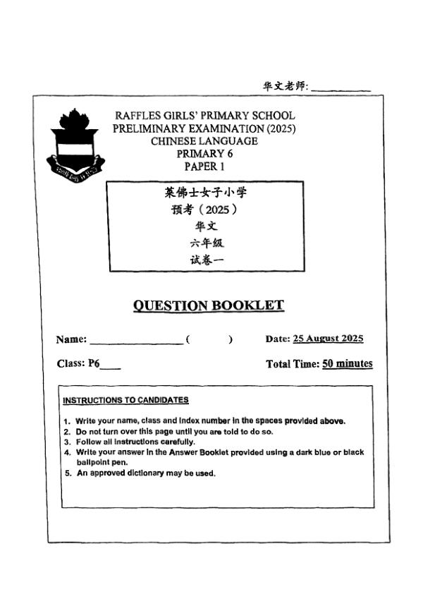 P6 Chi 2025 SA2 — Raffles Girls Raffles Girls