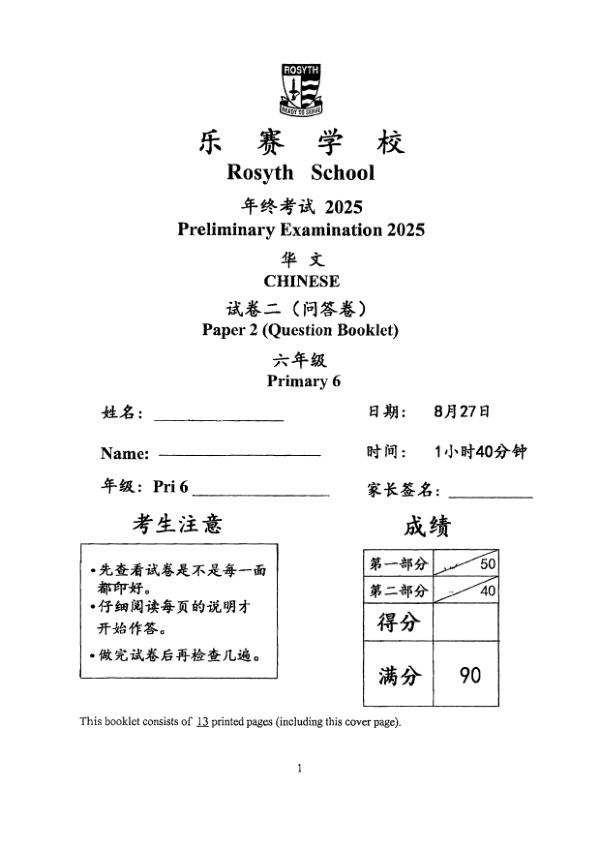 P6 Chi 2025 SA2 — Rosyth Rosyth