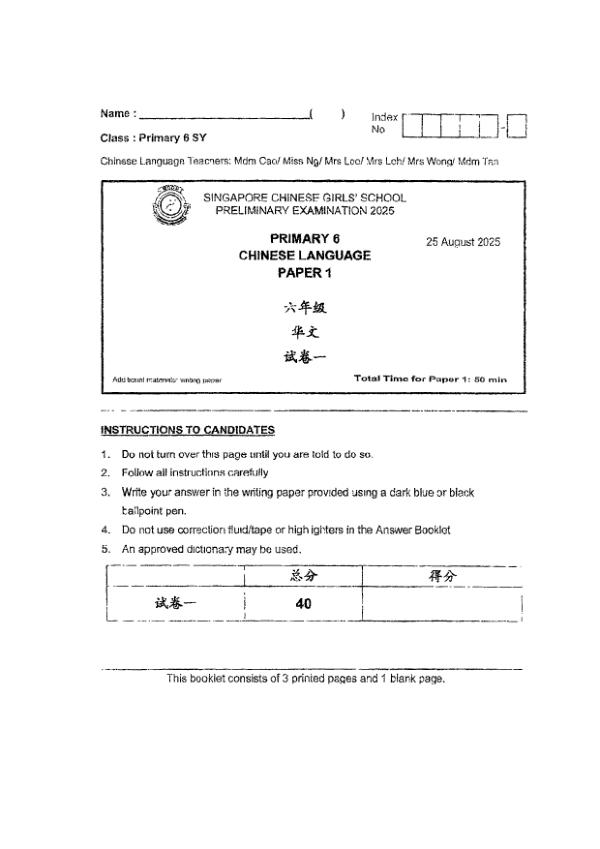 P6 Chi 2025 SA2 — Singapore Chinese Girls Singapore Chinese Girls