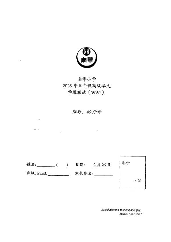 Level: P5 Exam type: WA1 School: Nan Hua Clear all
