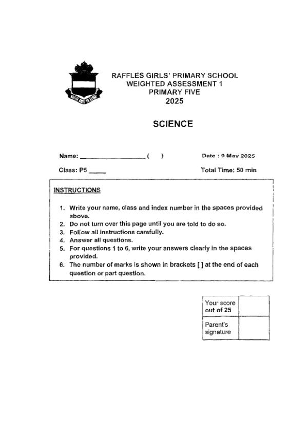 P5 Sci 2025 WA1 — Raffles Girls Raffles Girls