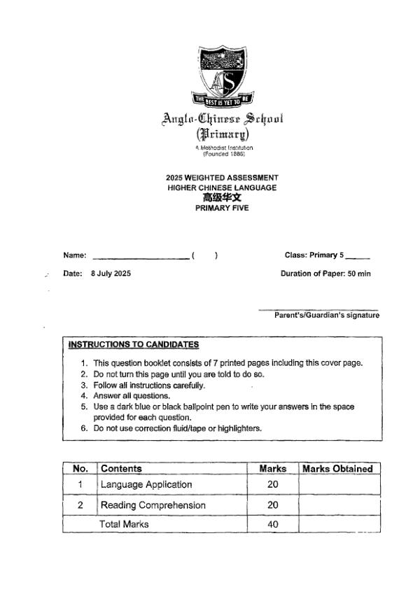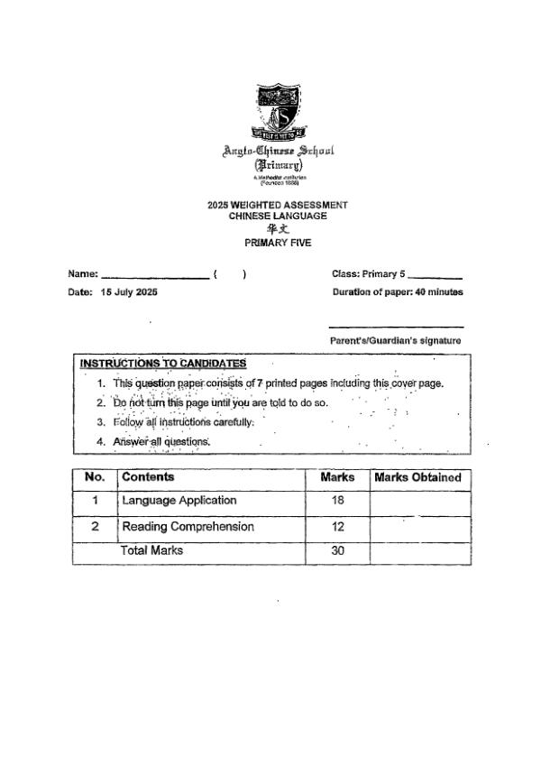 P5 Chi 2025 WA2 — Anglo Chinese Anglo Chinese