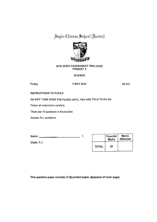 P5 Sci 2025 WA2 — Anglo Chinese Anglo Chinese