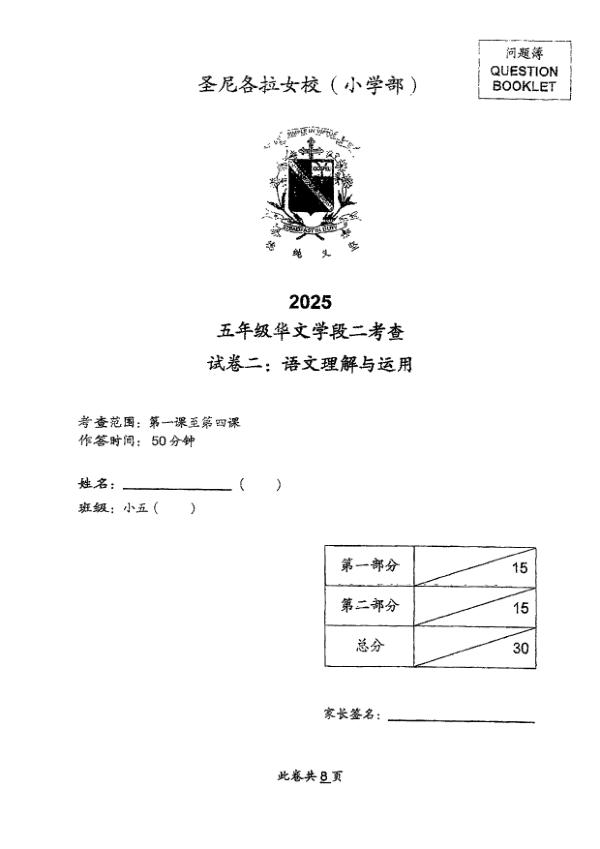 Level: P5 Exam type: WA2 School: Catholic High Clear all