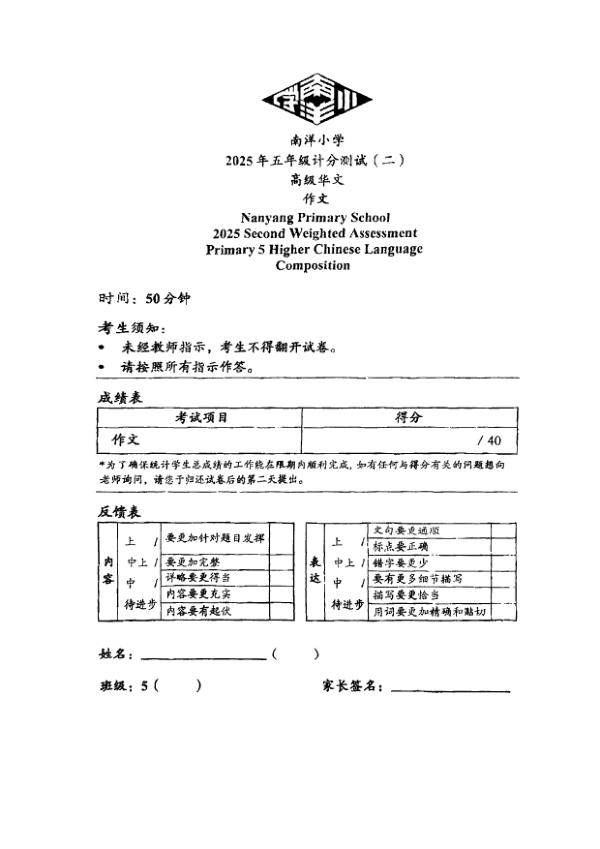 P5 Chi 2025 WA2 — Nanyang Nanyang