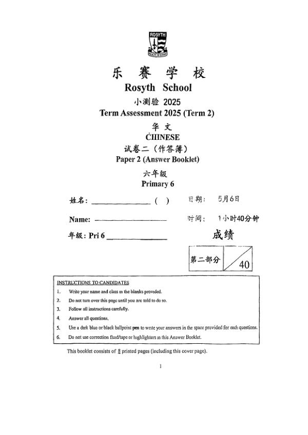 P6 Chi 2025 WA2 — Rosyth Rosyth