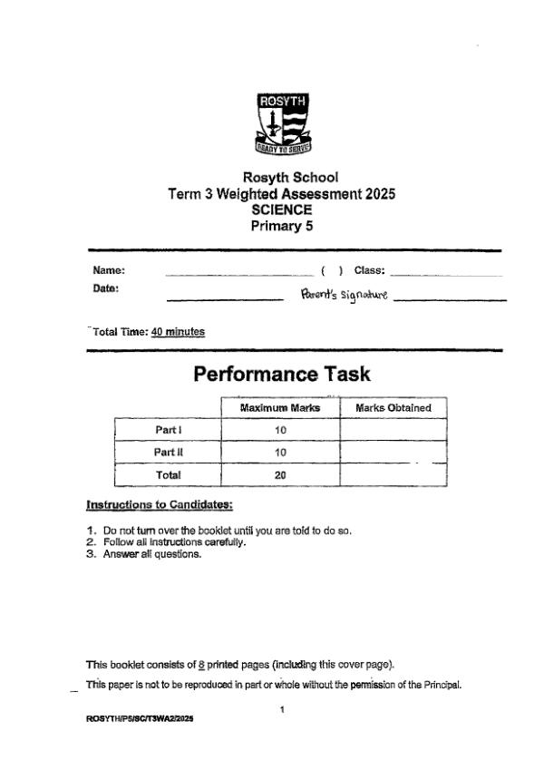 P5 Sci 2025 WA3 — Rosyth Rosyth