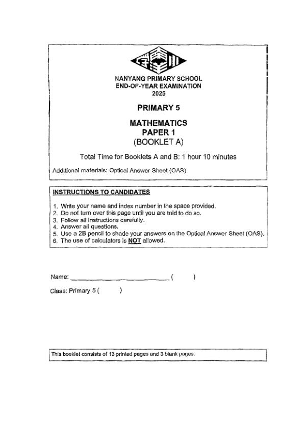 P5 Math 2025 SA2 — Nanyang