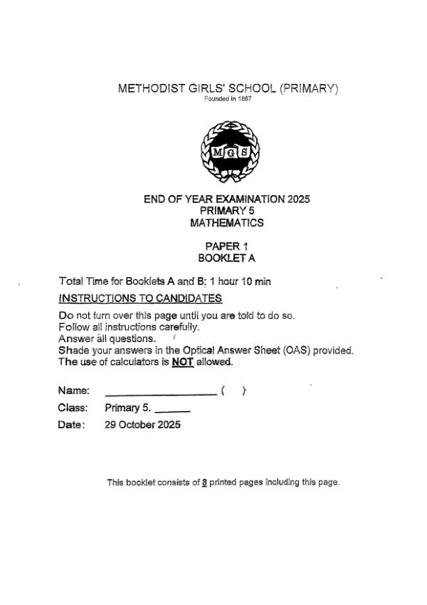 P5 Math 2025 SA2 — Methodist Girls