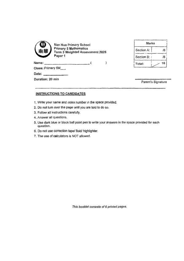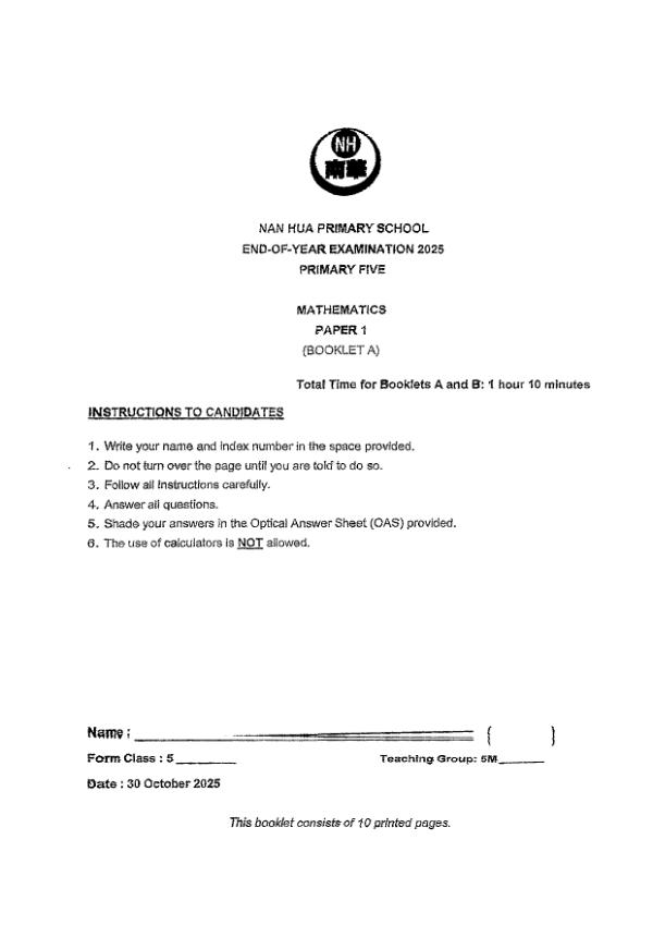 P5 Math 2025 SA2 — Nan Hua