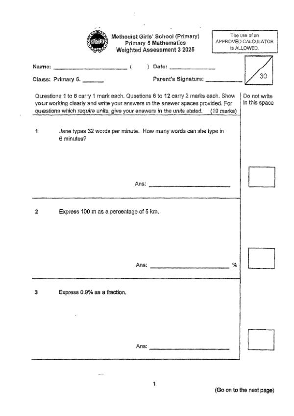 P5 Math 2025 WA3 — Methodist Girls