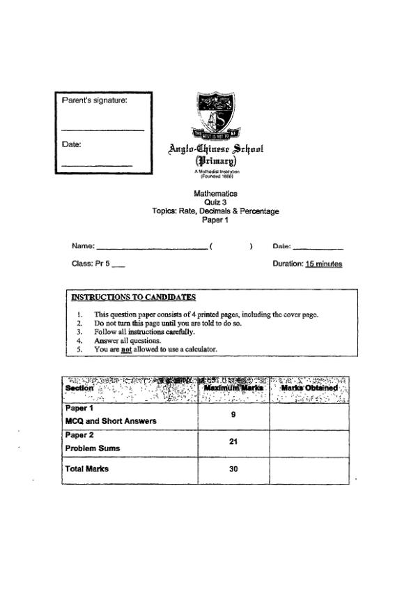 P5 Math 2025 WA3 — Anglo Chinese