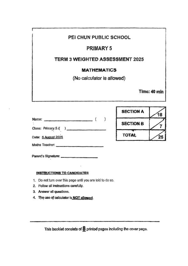 P5 Math 2025 WA3 — Pei Chun