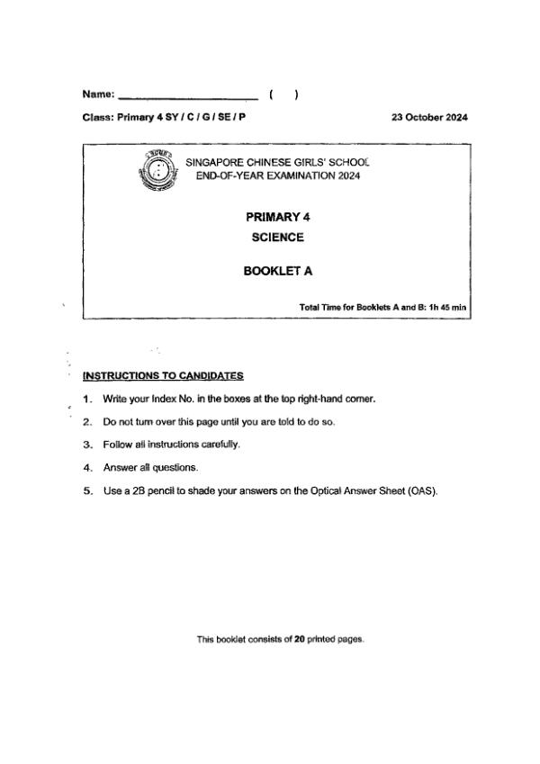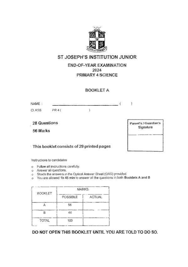 P4 Sci 2024 SA2 — Henry Park