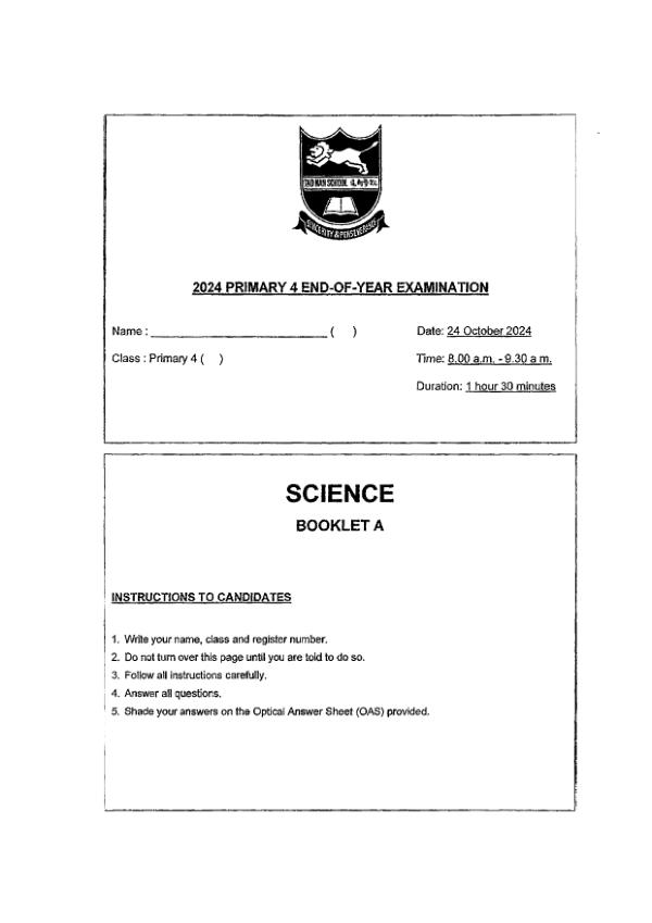 P4 Sci 2024 SA2 — Maha Bodhi