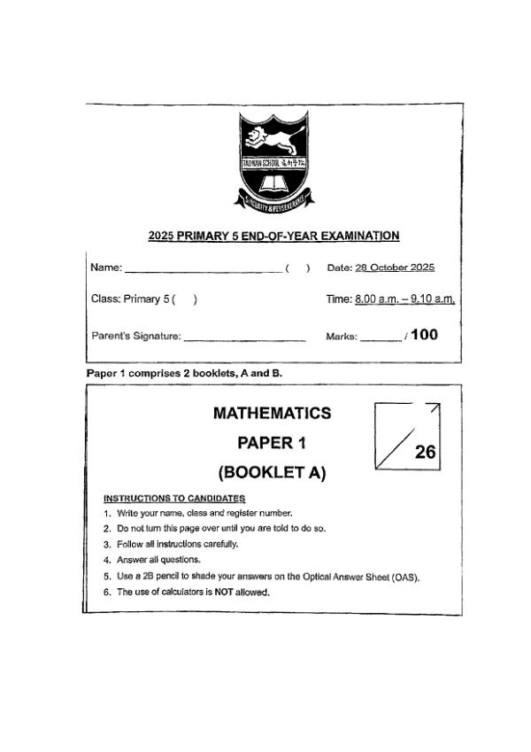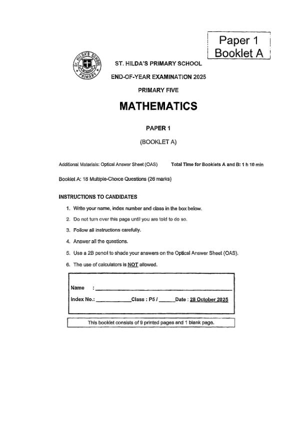 P5 Math 2025 SA2 — CHIJ