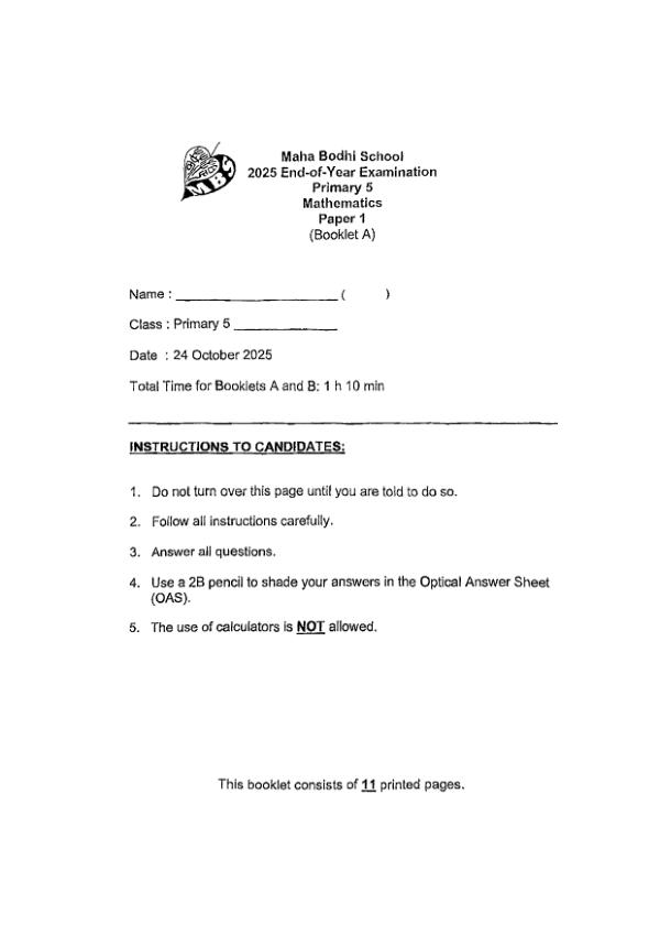 P5 Math 2025 WA1 — Maha Bodhi