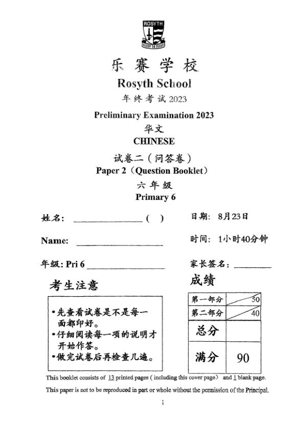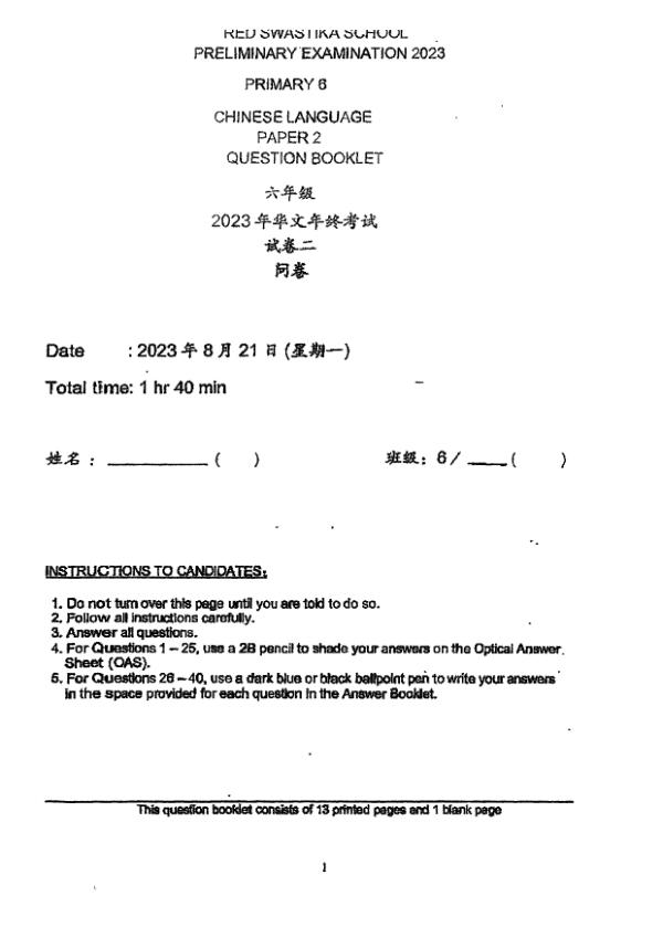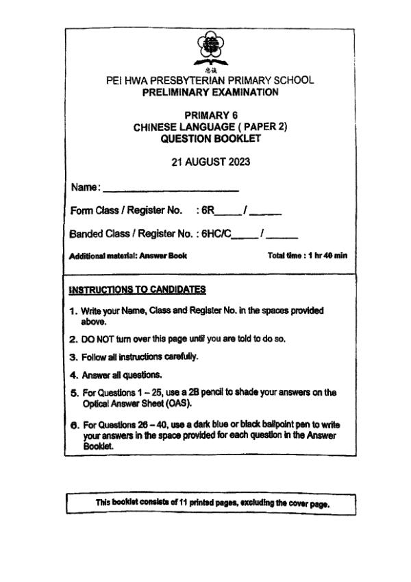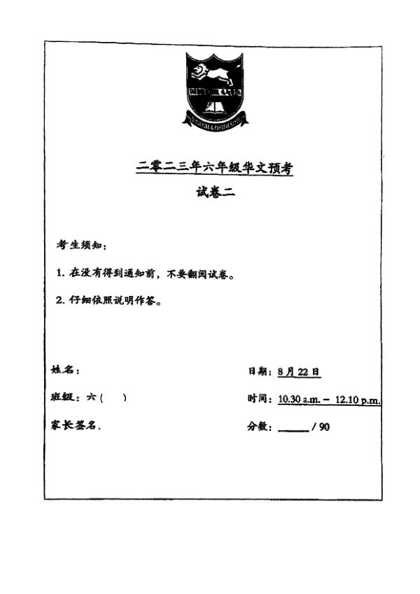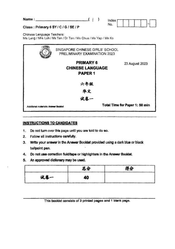P6 Chi 2023 SA2 — Singapore Chinese Girls