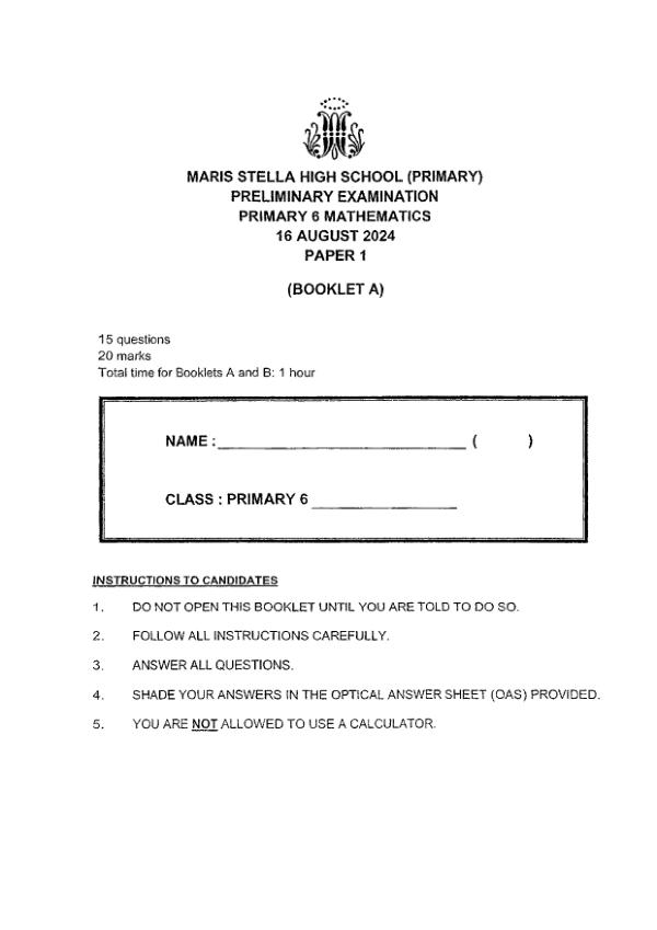 P6 Math 2024 SA2 — Maris Stella High