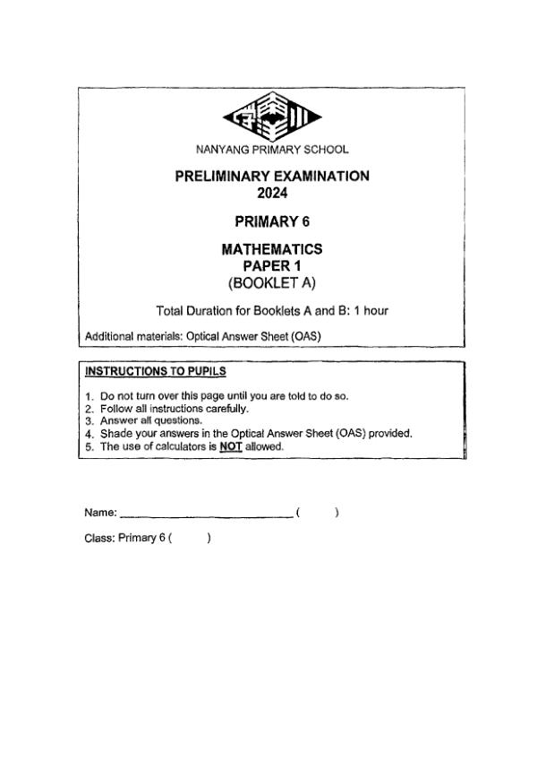 P6 Math 2024 SA2 — Nanyang