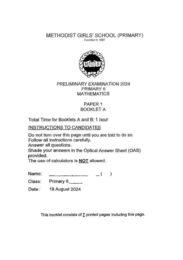 P6 Math 2024 SA2 — Methodist Girls