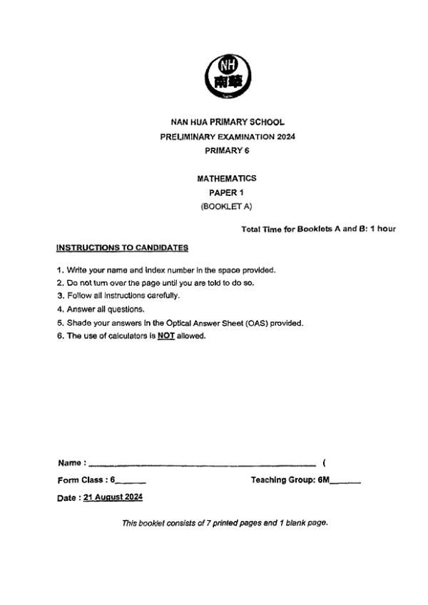 P6 Math 2024 SA2 — Nan Hua