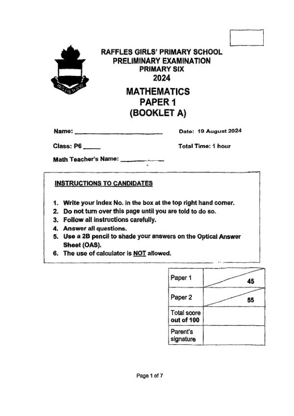 P6 Math 2024 SA2 — Raffles Girls